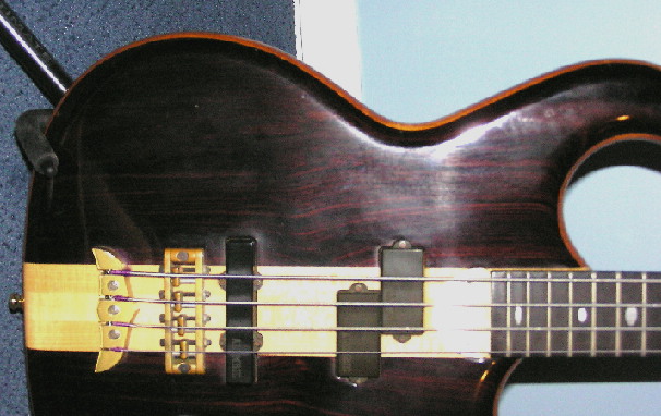 glad you got it safe and sound. i saw from the tracking UPS came thru right on schedule.  i'm glad you feel the same as i did-----i never exaggerate the beauty of one of my basses.  it's every bit as beautiful as my mark king coco bolo.  the knobs came off my mark king and, yes, they're coco bolo knobs.   i thought they went perfectly w/the vermillion.  i got in an argument w/a non-bidding so-called expert when the auction was still going.  he told me i was wrong about it being vermillion and said it was coco.  the vermillion has taken on a coco appearance w/age.  it is an extraordinarily beautiful grain w/a really beautiful flow to it.  anyway, in arguing w/this guy, i came up with a term for people who just want to argue about alembics to the point where it ceases to be an academic discussion and devolves into a i have to be right all the time kind of mess----------i shall henceforth refer to them as ALEMBITCHES.  you know much more about alembics than i do and you can clearly see it's a vermillion.  i'm glad you enjoy it. the sound is very signaturelike.  please let me know how the conversion to series electronics goes.  that would truly turn a gorgeous bass into a one of a kind work of art.