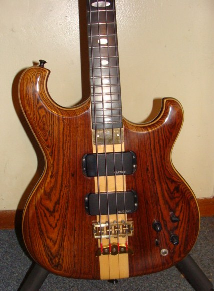 '96 Spoiler 4 string, medium scale. Bocote top, mahogany body,Maple neck w/walnut pinstripes. Standard Spoiler electronics. I purchased from another club member about a year and a half ago (here's a link to the seller's ad when I bought it-