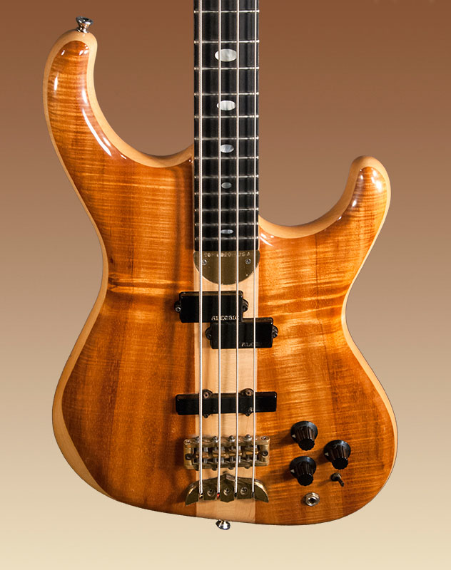 1990 Alembic Elan 4 String bass for sale in central London. Asking ?1650 o.n.o  Top:  Fiddle Koa Back: Maple Core: Maple Neck: Maple Veneers: Koa Finish: Clear Gloss Tuners: Gotoh Alembic Pick-ups Q-switch Electronics: volume, tone, pan Oval Inlays on fingerboard Recently professionally set up. Excellent bass, plays very well (as you'd expect). In original Alembic hardcase.