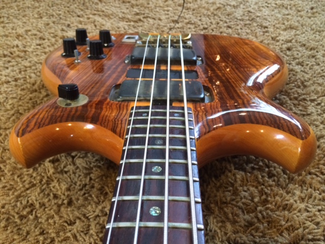 However, first it needs some cosmetic issues taken care of at the factory, plus side LEDs put on and maybe the logo redone. It is the nicest Zebrawood I have seen, and I like its 'texture.' New case seems mandatory. That or a brand new guinea sack, as it is an Alembic, after all. . . One more bass to polish up, one more fretboard to oil - Fun!