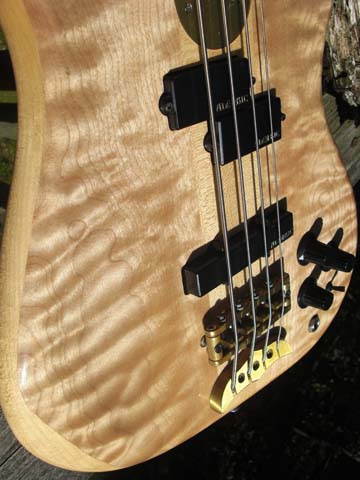 The opposite end of the spectrum from Alembic's other shapes and electronics, but for someone who may be intimidated by such things, this a 'traditional' shape, and anyone used to Fender pickups will feel right at home, though you'll find 'home' has now moved uptown quite a ways . . . vol/tone/pan and one 'global' Q filter, you don't need any more than that. If you do wish to dive off the deep end however, run this through a SuperFilter, should keep you occupied for months !