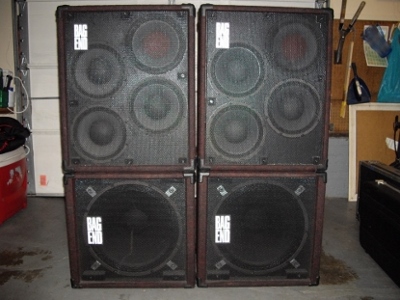 Hello guys, haven't been around in a while but I still visit the site to see what's going on. I'm selling some Bag End cabs that I toured with for a number of years. There are 2 4x10"s with the integrated horn and 2 1x18"s which don't require the ELF processor. I have padded covers for all the cabs which kept the covering in pretty good shape and the most important thing is everything works. I'm asking $1,500.00 for all four or $600.00 for each 4x10 and $250.00 for each 1x18. I'm not interested in trades just a straight cash deal. I'm still touring so I may be able to deliver these to whomever is interested.  Thanks for looking and take care.