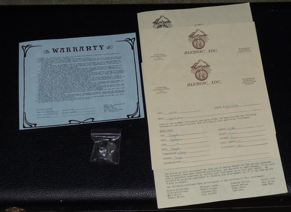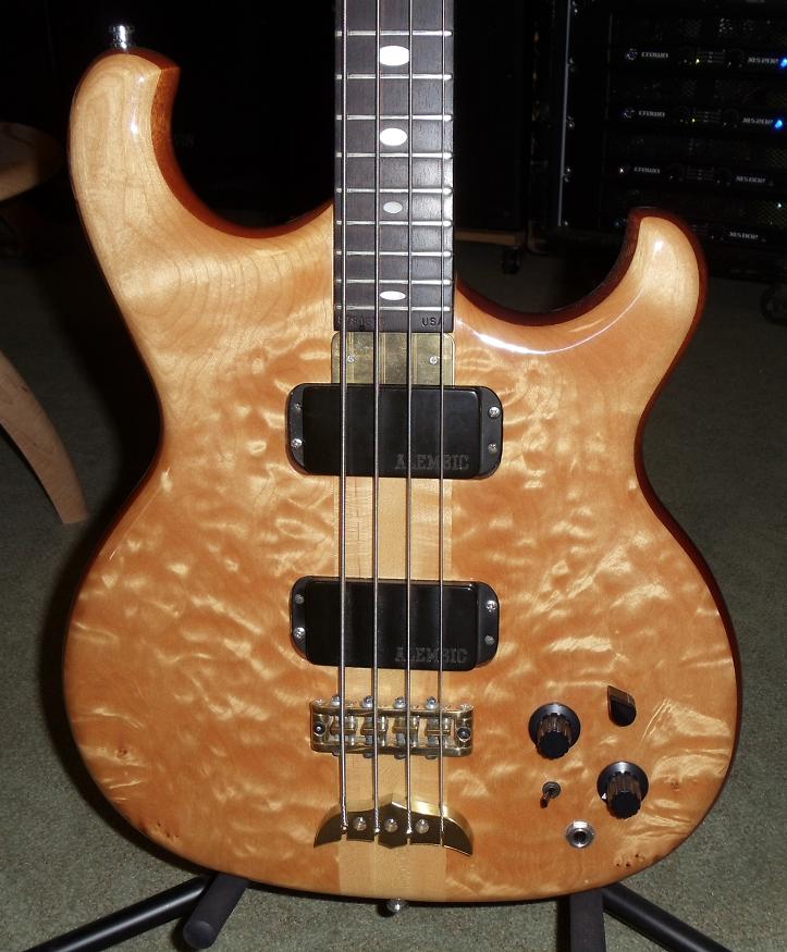 Ok, some additional info. This medium scale Spoilers' serial# is 87S4338 and its' case is the original one with the keys too. Besides the Series basses I'm also interested in a Signature or Brown bass. I've never played any other Alembic than this Spoiler so I'm not sure of the difference between the Series, Signatures and the Brown basses. But man they are all beautiful. Mostly, that is. I'm up for a trade and yes I expect to throw in a dollar or two. I'm asking $2300 for this bass. If this is a fair price I'll know soon enough, I'm sure. Right now I have a Carvin LB70P. The neck is very nice and the sound is killer. After having played this Spoiler I can see the difference in quality though. At least I think I can but am excited about getting one of my Alembic wants.