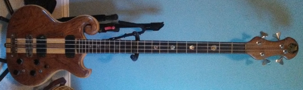 My understanding is (from new contact Michael) is that luthier Rick Turner left Alembic sometime in in the mid-late '70s and along with Brian Smith started (?) Hyak. I recall around 1977 or so going to E.U. Wurlitzer's Music store in Boston looking to order an Alembic and was told by the manager that he stopped selling Alembics at that time due to a shakeup at the factory, which apparently this was the shakeup. It is interesting just how little information is available for the amazing guitars. I understand that there were only a couple hundred guitars and basses made...When I bought this particular bass (pictured above) it was around 1981-82. I bought this used along with the road case (which is long gone)and the DS-5 that went with it from a music store, now defunct called Steve's Quality Music in Danvers MA. One play and i was hooked. I've toured with it, recorded with it...all around awesome. Not my everyday player anymore. As I've gotten older I've gone to the old reliable Fender PBASS Special. I've also semi retired my Gibson EB3. BUT! We need to know more about these beauties.