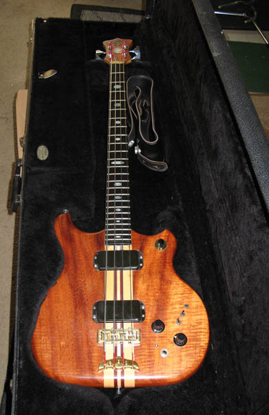9. Alembic 1981 Distillate 4 st bass: 32 scale, koa top, ebony board, blue
