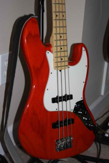 Lately I've been having a craving to get a high end 8 string bass, I've been looking at one of the Ibanez 8's from the 70's and have fallen with the look of it and the versatility of the controls, but I've also been wanting to get a high end 5 string, as far as brand I'm not really sure, it'll be played with a pick the majority of the time I'd be using it so having a more rock look would be preferred! Also I'm into things that are just different so send me whatever you have to offer. now what I have to trade, it's a 2005(I believe) Fender American Standard Jazz bass, 60th anniversary model with the S-1 switch, this is a rare model because the body is made out of ash as opposed to alder and is stained in a gorgeous Sunset Orange, this bass plays like a dream and is my go to slap bass, action is very low and has a very growly sound to it but can also be sweet like early JPJ tones.