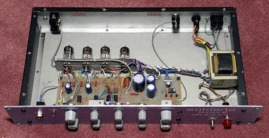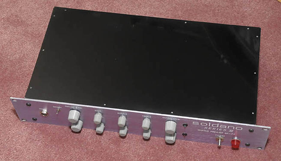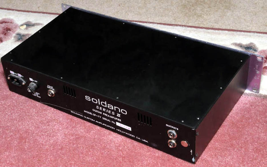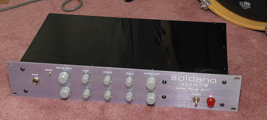 FS: Soldano SP-77 series II preamp.   This preamp sound amazing for guitar. It gives you the legendary SLO 100 tone at about 1/6 the cost. It has a clean channel (Fendery shimmer) and an overdrive channel (the mighty SLO 100). You can adjust the gain, volume, bass, middle, and treble on each channel. The clean channel has a bright switch. These units are out of production and hard to find.  You can put this preamp in front of a tube amp, like a Mesa power amp, or you can insert the signal into the effects return of a good guitar tube amp head or combo. It is recommended that you use it with a tube amp and not a PA amp.  Soldano uses their own preamp tube circuit design using 4 12 AX7 tubes in a unique way. The tube circuit is not designed like a Fender, where they use a pair of tubes for each channel, but rather, all 4 are used for each Soldano channel. The result is amazing tone, both clean and overdriven.  This preamp works fine. There is a small amount of rack wear and it does not come with a footswitch. Any standard guitar amp (button on/off) 1/4" cord footswitch will work. You do need the footswitch to switch between channels.  $500 plus actual shipping from Oregon.