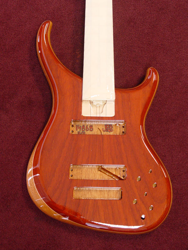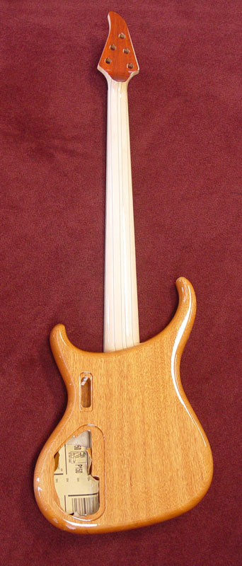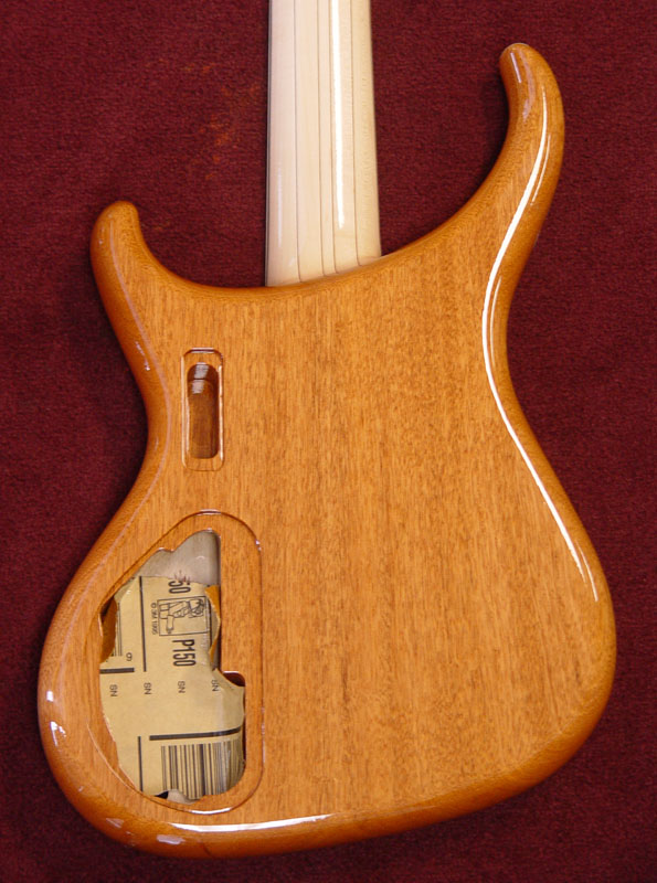 I have no pics at this time, as this bass is still being built. According to Mica, it has been poly-glossed. I am not sure if it has had it's final rub-out/buff yet. I will be asking Mica for some pics in it's current state, and will upload them as soon as I hear from her.