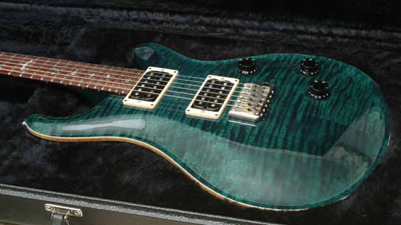 Selling my PRS Custom 24.   It has beautiful bird inlays, not a ten top but looks like one, OHSC and original paperwork, and is in excellent condition. All stock, sounds amazing, and set up correctly. The color is a discontinued Teal Black color and it has no real flaws other than slight player wear.  The case has three tasteful stickers on it, one says Fender, one Marshall, and one says PRS. Made in 2000.  Has original tools for the neck and keys for the case and neck is Wide-Thin (not the rare Brazilian rosewood, just the usual), treble PUP is HFS and bass is Vintage.  It does the Santana tone quite well and I can send you a sound file of it doing that if you are seriously interested. I just never play it anymore.  The 2nd photo looks like there is a flaw in the wood, but it is just glare. There are a couple tiny marks on the front from normal playing. The bridge has the usual PRS 'thinning of the plating' that comes with time and use. I will be glad to send any add. photos.  $1,700 plus shipping (USA only please) or possible Alembic trade.  Thanks, Dave