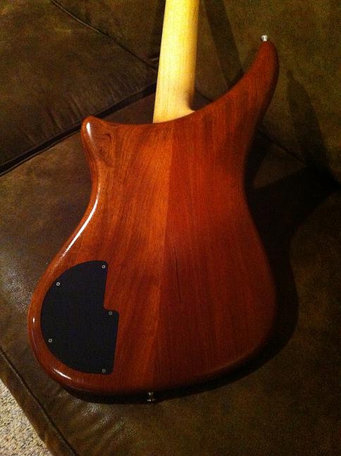 I am selling my 1995 Alembic Epic 4-string , mahogany body, wenge top, three-piece maple set neck, 24-fret ebony fingerboard, black truss rod plate, body matching peghead with brass logo, gold Alembic-Gotoh tuners, two Alembic MXY pickups, two-per-side tuners, volume/pan/treble/bass controls, active electronics, 34 in. scale.  I am asking $1500 and will split shipping with the buyer.  It is in excellent condition although there are signs of wear in the wood above the neck side pickup where my thumb rested.  I have been the only owner of the bass.  Here are some pictures.