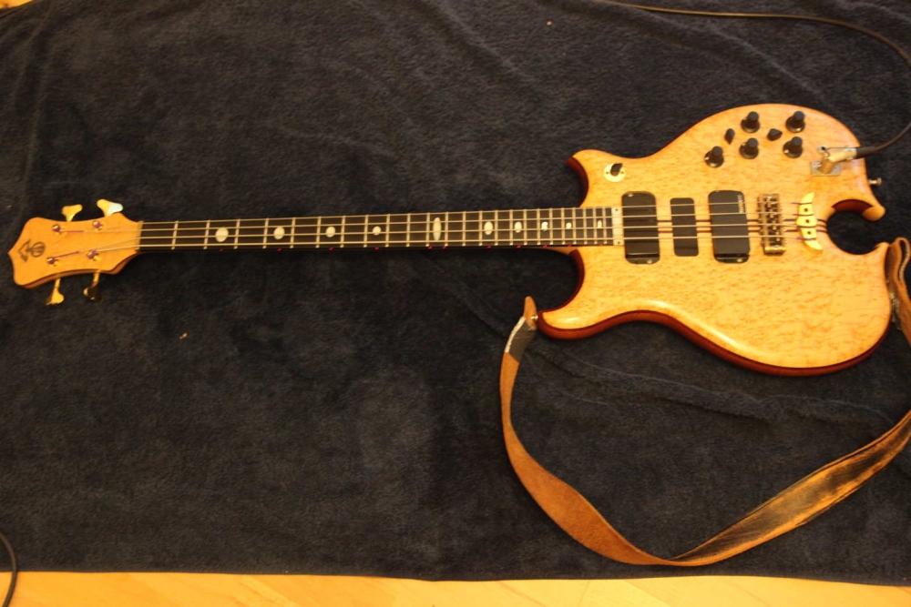 One of the most beautyfull Series 2 on the market. Birds eye maple top and back, The Series is like new. Only some wear at the bridge and one minor dong. no scratches. I changed one PU (Original) some years ago because it has a different polarity than the other. Now they are in phase. I also changed the original tuners to golden ones. The orignal chromes are still here. also the old pu. Than I solved some grounding problems (actually my electrition did) - the ground had no connection to the strings so it had some noise when you play the instrument, Now it?s quite.