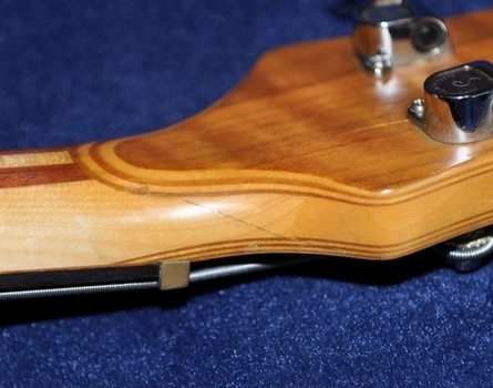 Bill,    In 4/09  I purchased a single pickup Distillate on ebay that had a similar headstock/peghead repair . I did not see the repair until I cleaned up the Bass and applied lemon oil to the finger board . A little lemon oil crept into the crack and revealed it.  Upon seeing it I was really disappointed and a little sad. I called Alembic and asked to have it inspected and Mica told me that it appeared to be quite stable. The repair was well done.  I play my Distillate often have gigged and done studio work with it with no problems. It's the One that I had at the recent Northern California Alembic Gathering.   Headstock repairs I found out are not always the  End of the World for the instrument.  Three cheers to the skilled crafts people and luthiers that do such fine work !