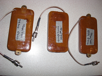 Here are the pix - had them in storage and forgot to mention that the humbucker is here too - based on the size, I'm guessing this would have been on one of the basses with the battery in the front between the pickups. The humbucker is marked in marker on tape - trap hum 1000/#40. The pickups are marked trap treble 100/#40, trap bass 100/#40   Wondering if 40 may tie indicate the bass it came out ofs serial number - any thoughts?  Not sure what the 1000 refers to.