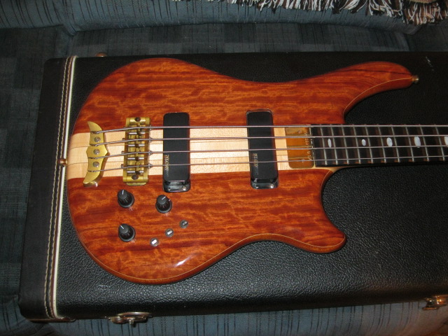 It is Bubinga and Walnut, a true Rock and Roll Bass, I have loved it since I had it built back in 1999. Unfortunately, personal reasons have forced me to consider parting with it.