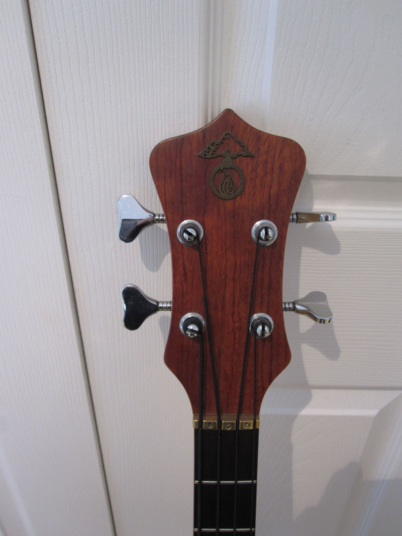 Alembic Persuader with Crown headstock: Bubinga Body, P/J config, had Alembic Re-fret and re-do all the fret markers from Pearloid to Brown abalone. There's archive info on this site somewhere in 2008 or 2009 I believe. Great Bass.I have more pics as well, but can only post this one so far due to size.
