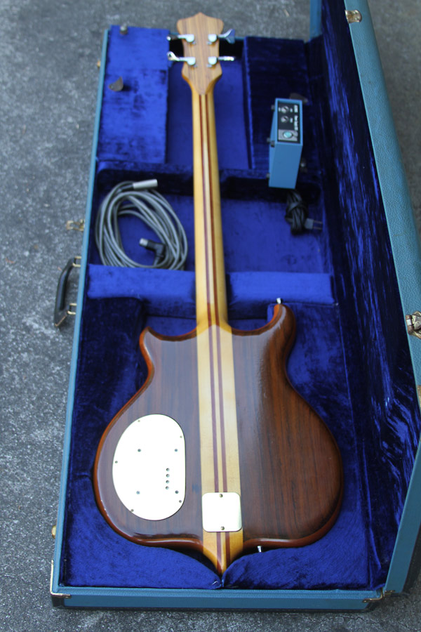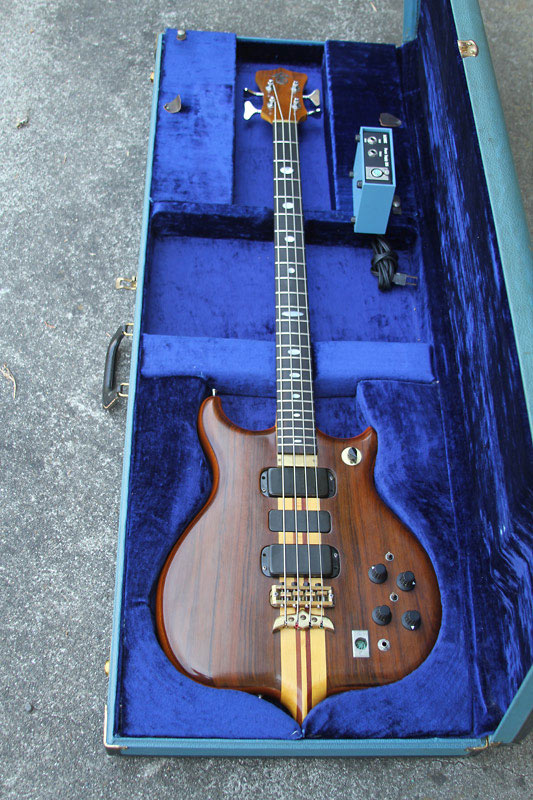 I bought this bass a few months ago. Pristine 1977 Series I, Peruvian Walnut Top and Back with a Mahogany core, the finish is great, some light checking on the back. When I bought the bass it didn't look like it was played very much. Comes with original Blue Case, 5 pin cable and original DS-5 blue box power supply. I had the bass setup, and the bass, cable and box bench checked at Alembic. Everything is in perfect working order. I'm looking to sell or trade this bass for a Medium Scale or Short Scale Series I bass. The 34" long scale is just a tad too long for me. I've been playing short scale for a few years now and 32" or shorter seems to work best for me. $4500 + shipping or trade for similar series I in 32" or 30.5" scale