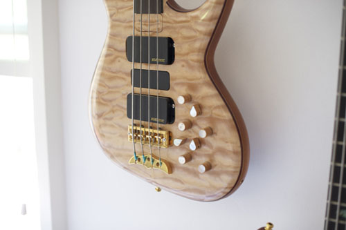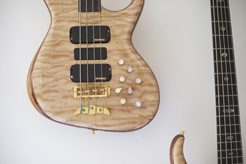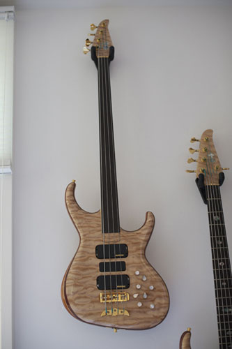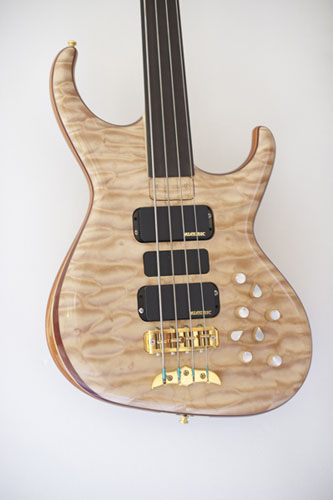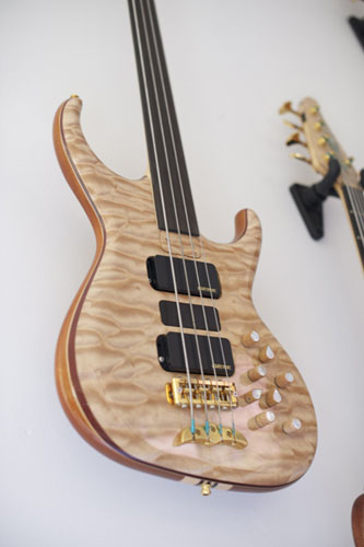 For sale: Brand new, never played, full factory warranty. $14,000. Contact via E-mail or contact Kevin directly at (619)838-8200 SPECIFICATIONS 4-string Series II bass Master grade Quilted Maple top bookmatched to center Master grade Quilted Maple back Continuous wood backplates and truss rod cover Ebony neck laminates Polyester finish with satin neck feel Abalone oval inlays Series II electronics with side-mounted jacks Side LEDs in amber Inlaid logo with shell Goldplated hardware