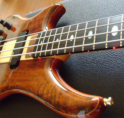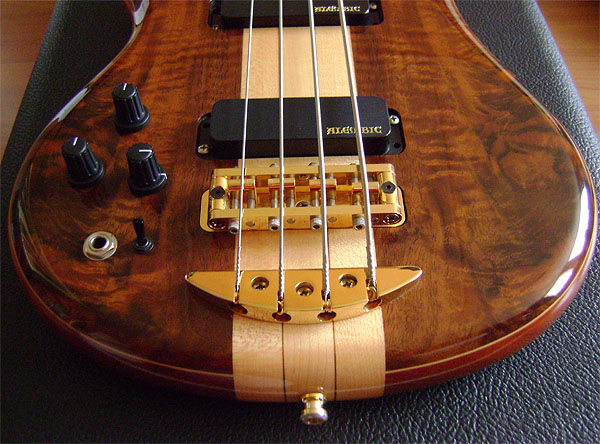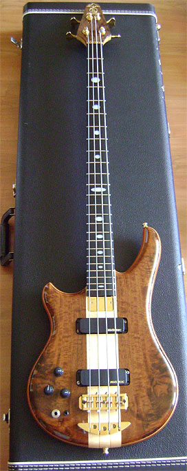 I have an Essence 4 string lefthanded for sale: - build in 2000 - mahogany body with a beautiful walnut top - ebony fretboard - mother of pearl oval inlays - gold hardware (all goldplated) - little red leds on the neck I'm the first owner. The price for the guitar is 1650,- EURO.