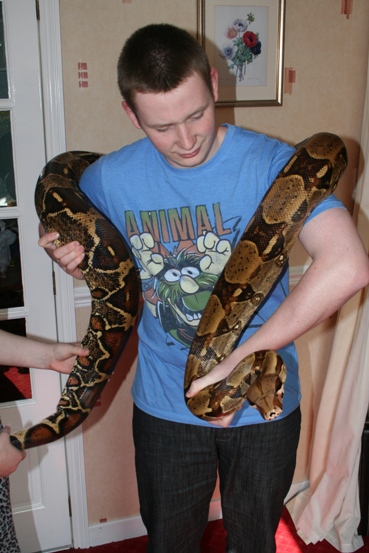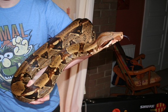 Floyd's my red tailed boa. My son, Stephen is over 6 feet tall to give some idea of how big floyd is.  Graeme