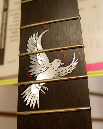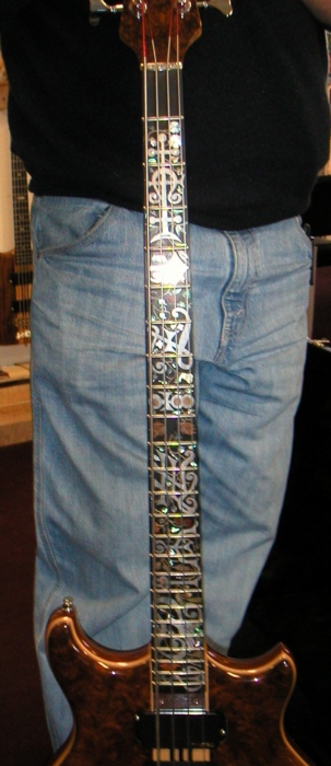 I saw Stickk's thread, asking for the Birds of Pray inlay pictures, and thought that perhaps, we could get a new sort of showcase thread, showing all the special inlays Alembic has made. I'll put up some pictures that I have collected over the internet and this forum. So if you see something that looks like your bass, it probably is!!