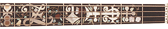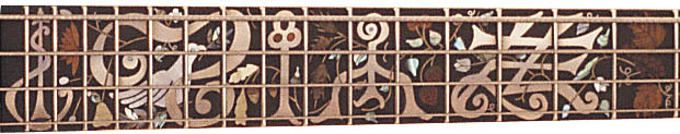 There was an inlay set in an Alembic fingerboard I saw here a while back but I don't know where it is.  I remember the owner of the bass calling it California Gothic.  It was palm trees, crabs, and other really cool stuff.  It was certainly not real ornate, but beautiful.