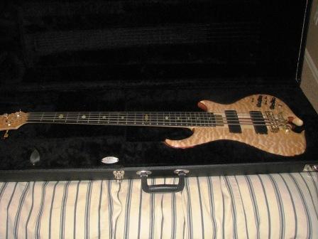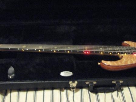Hello Alembic club!  I have for sale a relatively new Mark King Five String.  Purchased in June 2008 from Bass Central.  I've had it professionally set up - new strings, intonation, etc.  Original case included - this has a couple of white paint scuffs on it, but nothing major.  Bass is in perfect condition - no dings, scratches.  Never played out, never left smoke free home.  Bass is just amazingly beautiful.  However, after 15+ years of playing, I just cannot get used to a five string.  So, I want to sell this one and purchase a MK in a four string version. My first ever Alembic and I've gotta now get a MK 4!    The down and dirty: 5A quilt top, 3A quilt top bottom Red and amber LED's  Heart Omega cutout Tummy contour  There's more to add, but I have the bass at my office.  I'll update the post tomorrow.  Serial number to follow - It's something like MK13xxx  Pains me to see her go, but I need a four string version of this!    Priced at $4750 shipped to the US only.  Paypal preferred.  Sorry, no international inquires please.  Since I'm new to the board, you can check my ebay profile for a history (ernval).  I'd consider trades, but it would have to be for an immaculate MK 4 that's very similar to mine - omega cutaway, LED's, etc. (blue LED's would be awesome!)  I'll list it here until Labor Day, 9/1/08, then it's off to evilbay.  Pictures to follow and thanks for looking!    Ernest