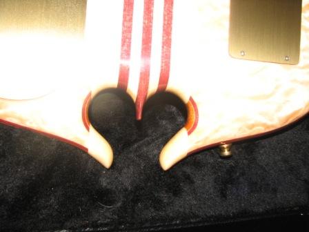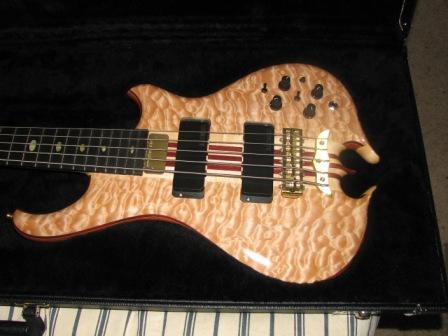 Alembic Mark King 5 Deluxe, 5A Quilt Top, 3A Quilt Maple Back, Balance K Body w/Tummy And Elbow Contours, Heart Omega, Amber Side LED's, Red at 12th and 24th frets, Golden Abalone Inlays, Case.