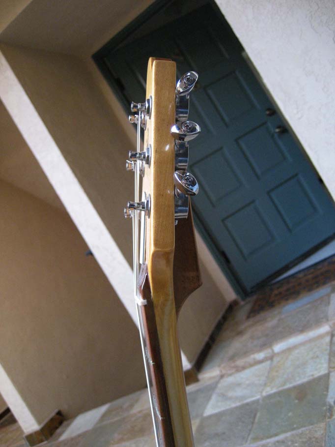 I'm not an expert in this, but I'd say it's C-shape; it feels more like my Breedlove acoustic than it does the Skylark, which is definitely thinner. The neck has gloss varnish on it, and this volute at the top  of the neck.