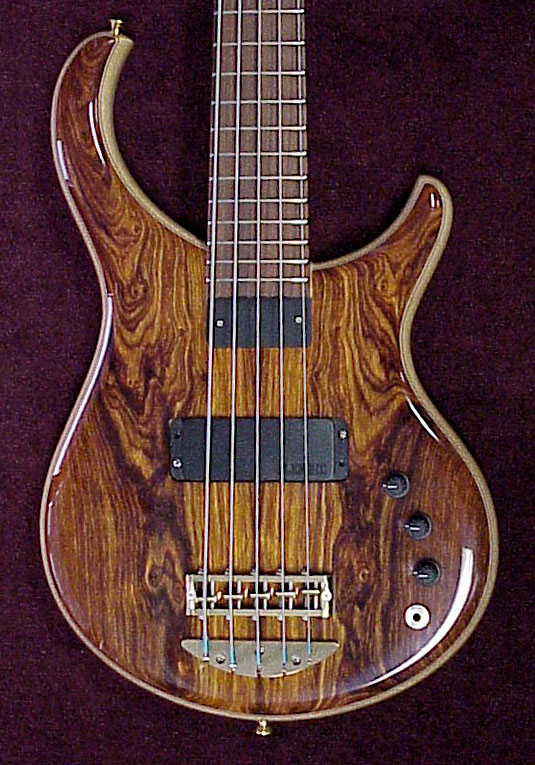 Specs- Excel, set-neck, Maple w/ walnut stringers,Pau Ferro Fingerboard, Nicely figured Swamp Ash body, Maple Pinstripe, GORGEOUS bookmatched BTC cocobolo top, optional Hi-Gloss polyester finish, matching Headstock, Single FatBoy P/U, Standard Alembic pre-amp and controls (Vol,Bass, Treble cut/boost). Plays like BUTTAH and sounds like THUNDAH! Very comfortable to play, nice weight, not heavy.