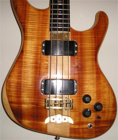 1990 Alembic Elan id# 90H57** , The bass is in real nice condition for its age. There are three dings, one on the back in the middle. One on the lower horn and one between the pickups. The scratch in on the neck by low F, you cant feel it when playing. Comes in a soft case that is showing its age.
