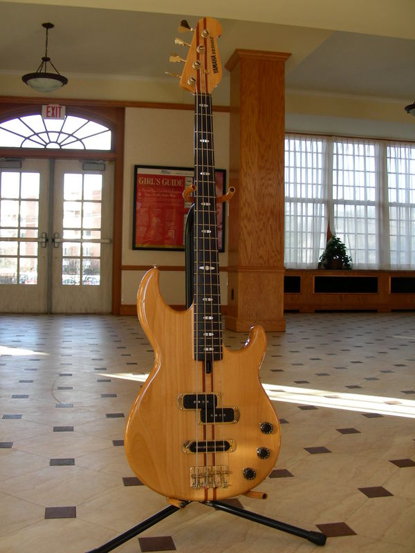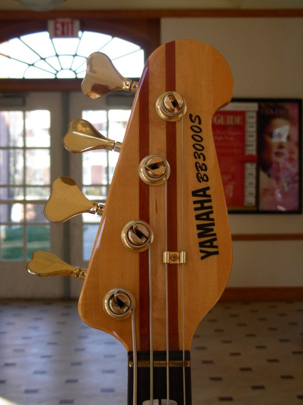 The 3000S was the result of Yamaha wooing Jeff Berlin as an endorser. JB had tried the BB1200 and BB2000 (the real antecedent of the 3000) and liked them, save for MUCH thicker necks, almost like bad-CBS/Fender Precision necks. So they reduced the neck for him, and later when things did not work out for JB to endorse them, they went ahead and sold this slim-neck version as the BB3000S. Maple/mahogany neckthru with alder wings, and the 'chocolate-stripe' (macassar) ebony fingerboard with some suspiciously familiar-looking MOP oval inlays and gold parts.
