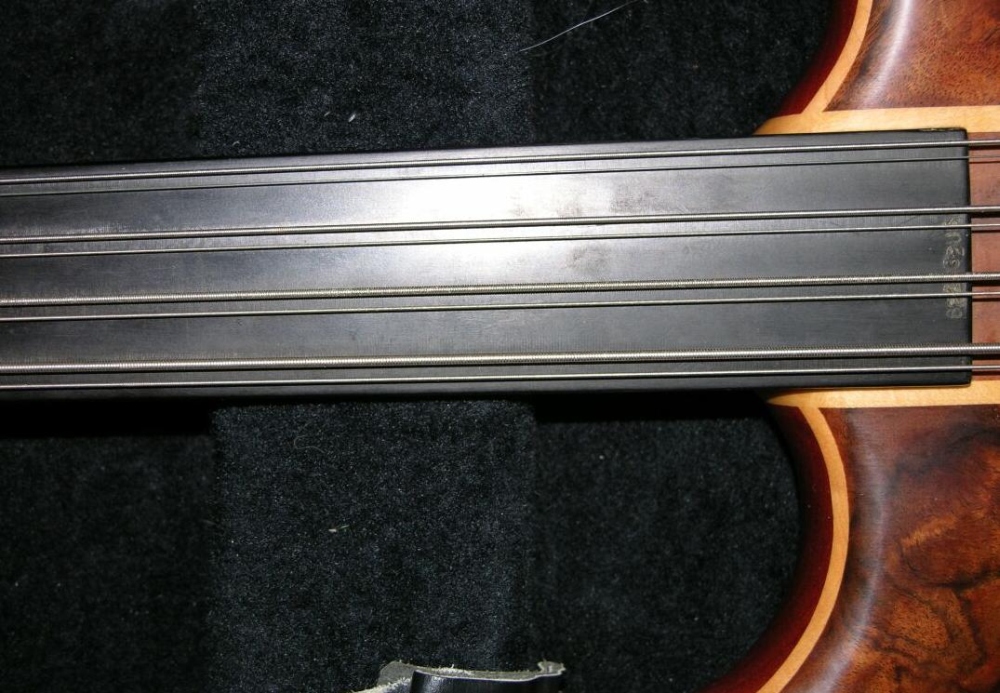 Ebay lists reserve at $7k;  I see flatwounds at E, D, but a roundwound A pair...