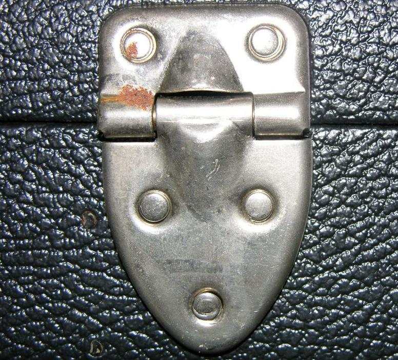 As usual, Michael is correct about the nut being bone.  A blury shot, but it makes it plain on the nut and the thinness of the logo.  Bass looks to be in near mint condition, as are the power supply and cable.  A little time with a wire wheeled dremel would have the case looking fine for a 22 year old one.