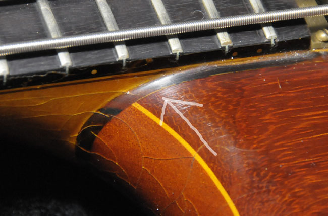 Probably Macassar Ebony and I have a theory about the ring around the bridge. My guess is that there was a router oops and it made a little trip outside the block. Something must be done! It would make sense to use the neck framing wood as the decorative patch around the bridge.