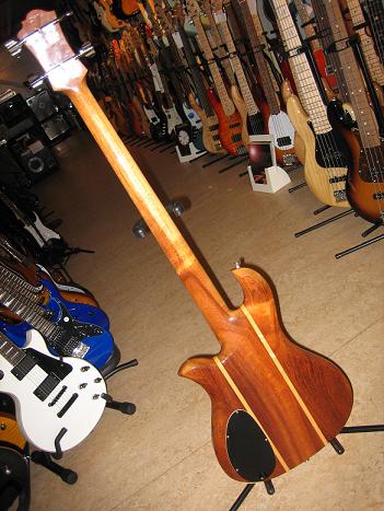 The combo on the longhorn was part of a run of instruments built for Hollywood Guitars. My longhorn is another example. Instead of the usual Koa/MapleStringer/KoaNeck/MapleStringer/Koa and Maple/RosewoodStringer/MapleNeck/RosewoodStringer/Maple, the instruments commissioned by Hollywood guitars had the rarer koa/rosewoodstringer/maple neck and maple/rosewoodstringer/koa neck. The grain on the neck of the longhorn at the show is unmistakeably (sp?) koa. Was very very clean too.