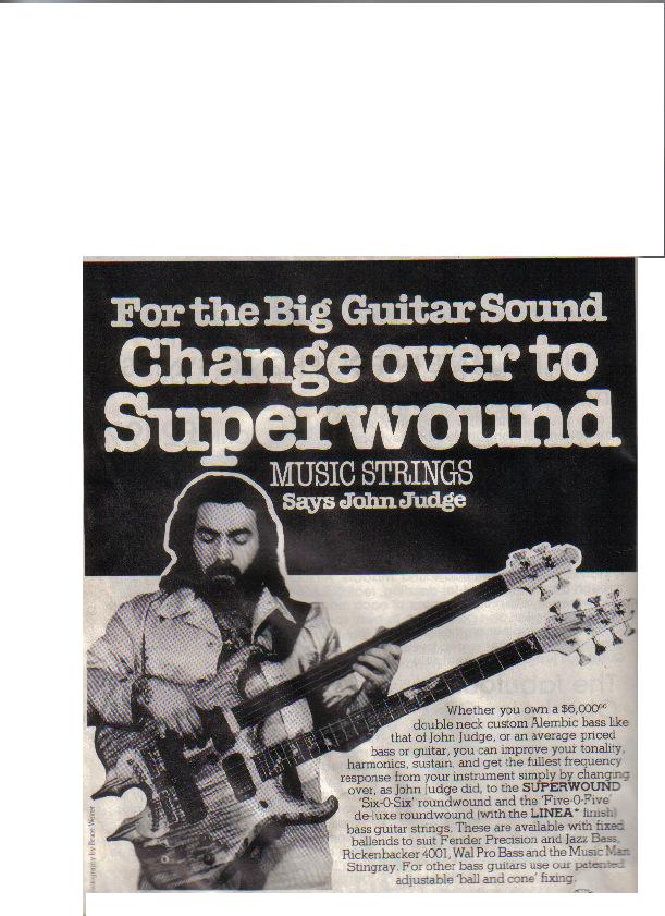 What a bass!.I first saw her in a Rotosound/Superwound ad in 'International Musician' magazine in 1978 or 79.The ad featured the very same John Judge mentioned by Kris.