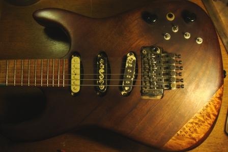 Not so much to play it, but to hear what it sounds like. I was just referring to Blue Man Group in another thread, and I'm reminded of how they use boxes of Capt. Crunch as percussion instruments. Like that.   Back in the 90s I dropped a set of Hondo pickups in our bands guitarist's axe. To this day he has no idea where they came from. Hell, I don't know where they came from! only that I'd snagged them off a fifty-dollar Hondo that had imploded or something, and right around that time I set a bunch of them up for store stock and the first thing I said when I plugged one into my bench amp was ... Well, let's just say that only modesty and decorum prevent me from repeating it in this august forum, but man them things roared! I couldn't believe it.  So I had umpteen sets in my junk boxes, as these Asian time-bombs self-destructed. And they cranked! it was like you bought three coils of wire and they threw the rest of the guitar in for free (stick it in the trunk, to dig yourself out of snowdrifts).  My favorite part about your guitar is its creator's intentions in the face of his delusions of adequacy. Like the way the grain of the wood is wonky as hell. Yet it works. Graft a chunk of maple on it, then stamp your name in it - badly - so everybody knows who to blame. I love that.  So since you're the only thing standing in the way of true love, what will it take for me to be united with the object of my devotion? I've got tons of nifty stuff to barter. [bats eyelashes]   PS: I stumbled across a video on YouTube that explained this monstrosity: