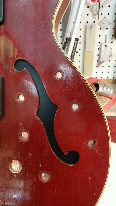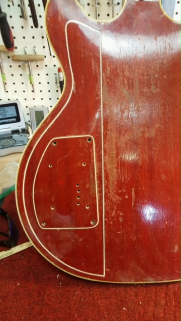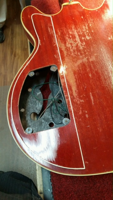 It should be done later today. Then I just have to reinstall the electronics.  I've been debating about moving the XLR output to the side of the bass. Or maybe still on the top but closer to the bottom (i.e., where the strap is).   Any thoughts about side mounted vs. top mounted jacks?
