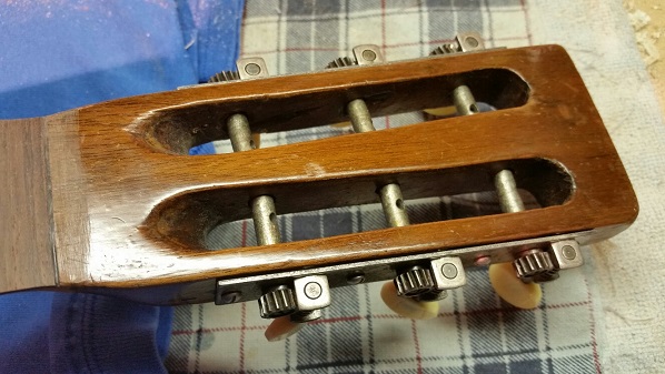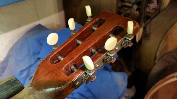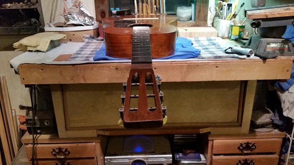 Skipping forward, the guitar stood in a dusty corner of my shop for another couple years. Then I met this girl who said she wanted to learn to play guitar. I liked her a little bit, and since she could sing like an angel, I kinda? wanted her to like me back, so in a fit of hormones or something, I totally went off the rails and set about putting the old guitar in playing condition.