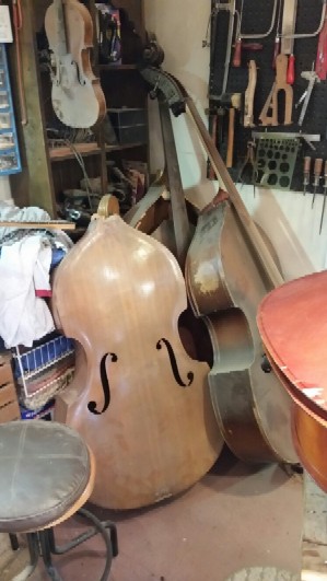 I once refurbished a Double Bass that needed the entire neck to be reattached. I also fixed holes in the side and re-shellacked the whole instrument. I sold that Bass around 2005 but acquired it in three pieces in the late 1980s and stored it until  I reassembled it around 1991 when my Girl Friend moved out. I took about 6 months slowly doing the job. It actually sounded decent when completed. When I started the repairs I had never done some of the particular procedures before and went around very cordially asking questions of many luthiers and Violin technicians. The old craftsman that offered me the most practical guidance was a fellow who worked at a stringed instrument rental and sales business. That business had a contract with the Berkeley Unified School District . I did all the work in a tiny apartment before I found my house.