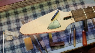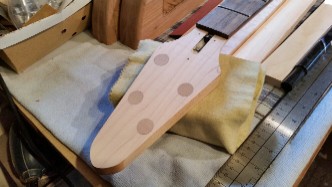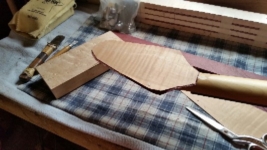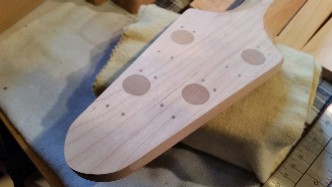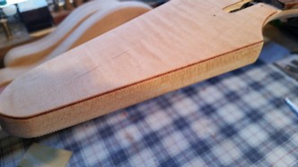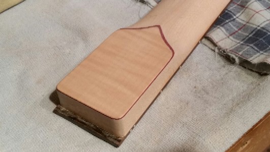 Up next week, reworking the body I made such a hash of back in yesteryear... and then I gotta' start thinking about electronics, and routing the cavities they'll fit into.    * Did anyone happen to spot Mica's birdseye maple block in use? =)  (Message edited by edwardofhuncote on March 20, 2015)