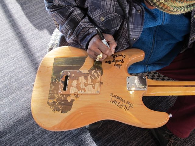 On Saturday night I went to see the wailers in concert with friends and we got backstage to meet Aston Barrett. We all had a great chat and took photos and I asked if he would sight my wailers tribute guitar. He agreed and I met him at his hotel on Sunday morning and we chatted for over ah hour about his music life his basses what he likes tone wise and apart from us having totally different tastes in bass we have remarkably similar aims in respect of our bass tones for reggae. (Not surprising since he is a big influence for me ). Anyway I showed him pics of my ALEMBIC and he said that years ago Rick james used to come to their concerts and brought his ALEMBIC for him to try out. He said the bass had 3 pickups and lots of switches. He said he felt the neck was too flat round the back and he prefers a deeper neck which he feel has an affect on tone. Also fender send him basses to try out and he does not think the new basses Sound or feel as good as the 70's basses. He gets his guitar tech to put a 1970'sneck on them to make more comfy to play. I did offer to bring him one of my 4 string maple ?lan  basses to try out at sound check and when I described the tone of it he said if you bring it I may want to keep it. Anyway as it happened his son told me he was not going to sound check that day. Anyway he signed my strat. I will post a photo later as I can't see the size of the picture on my iPhone.