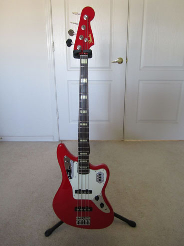 It's a Fender Jaguar. If you get one, you'll want to have a tech repair the noise issues with the electronics (known defect - easy fix) and probably replace the stock stamped metal bridge with the Fender milled brass replacement bridge.