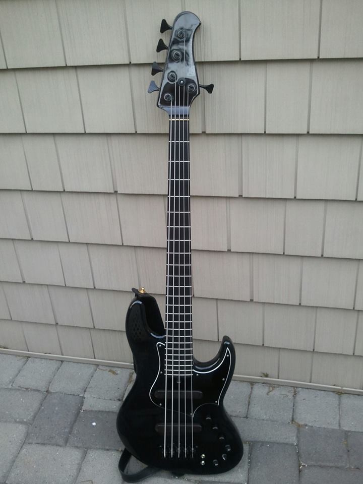 Thats just the strap. Black straplocks too.I swapped them out first. 24 fret. brass nut, ebony board, 6 bolt neck, hum cancellor, vol pan tone, bass mid treble, bright sw, mid freq switch, now with blk hipshot hardware. I have other black straplocks new for such emergencies, ie maker not offering black. I still have my wood showing Alembics but I enjoy black. Goes with everything.