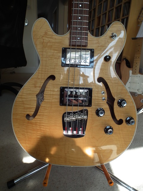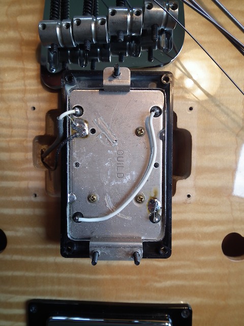 also I reversed the pickups so that the powerful coil (one is weak the other strong on each pickup) is away from the neck and bridge picking up the more central harmonics and tapped that coil.