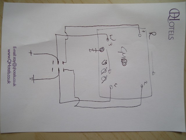 The basic configuration is in the photo of the reverse of the pickup, the other photo shows the bass with the pickups reversed and coil taps in place.  the 2 coils are each at 2kohms but each pickup has a week and strong magnet and the strong coil has a much bigger signal. the first drawing is of the standard config and the second is of the rewire. The pickup case is earthed separately, but this is probably not necessary. the switch is a 6 pole 2 position on/on switch to either include or exclude the second coil as parallel.  I hope this helps  bw Peter