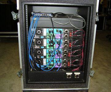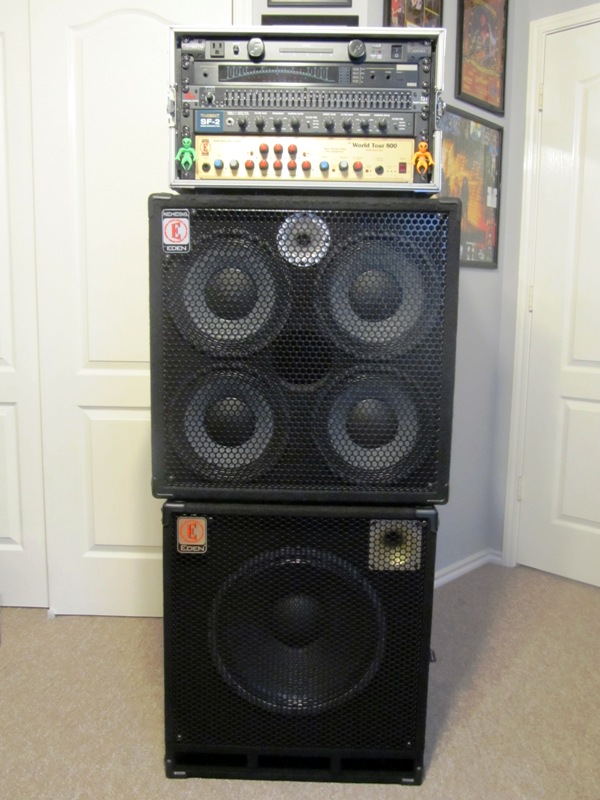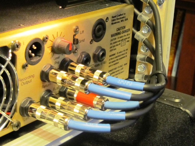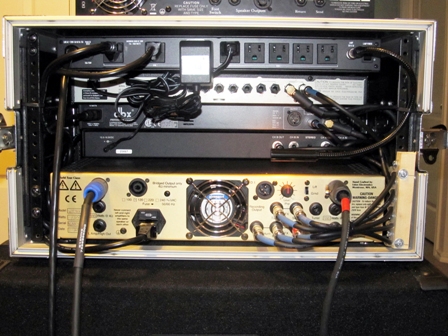 I just bought an Eden World Tour 800 & SF-2 & while mounting them in my rack & hooking them up, I decided to take some extra time to organize the cable routing & get rid of the wadded mess of cables I had with my old amp. After doing this, I thought it would be interesting to see how many people take the time to have clean & tidy rigs VS just hooking them up & cramming the cables in the open space. So how about it Alembicians, we've all seen pictures of the front of your rigs, who dares to expose your backside in all of it's glory or confusion, whatever the case may be?! "Hi, my name is Rusty & I'm a reformed cable slob!" Hooking up the mic cable to the D.I. on my old rig was like cramming your hand into a haystack looking for a jack that was buried in the hay! Here's the new & much improved rig -