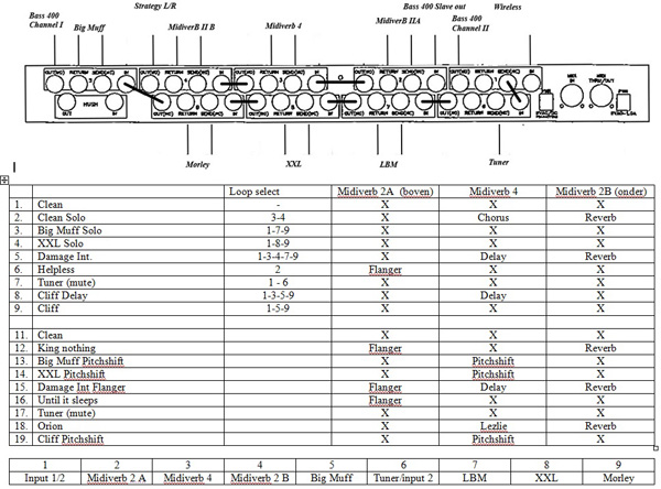 Just finished my amp setup and looking at all my gear I realized almost everything comes from California; Santa something - Olympic basses, LA - Alesis, Burbank - (tel-ray) Morley, Petaluma - Mesa stuff) I love California! :-) After a lot of struggeling with my soldering iron, I came up with this: Wall of deaf MKI: