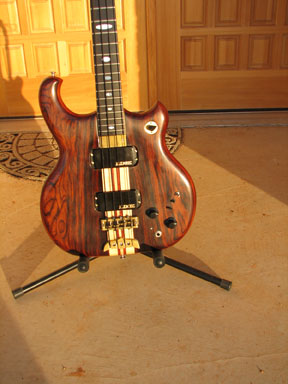 Really nice looking bass.  I love the look of old cocobolo and the older style sandwiches.  I was tempted a few months back by a very abused Spoiler that could otherwise have been the twin to your bass.  Enjoy it.