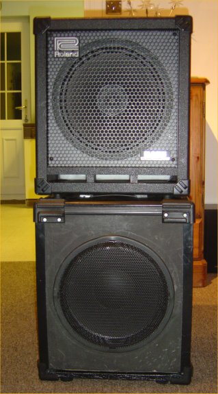 My two rigs..Asdown for for the pop covers band, the Roland BassCube rig for the jazz & salsa gigs